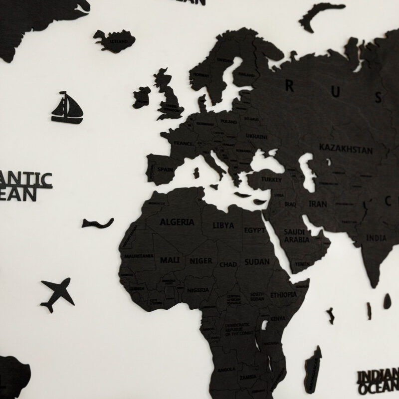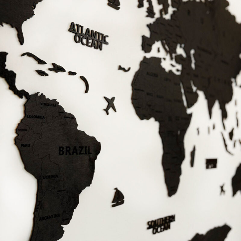 Drewniana mapa świata „Black Wood” – w odcieniu czarnego drewna.
